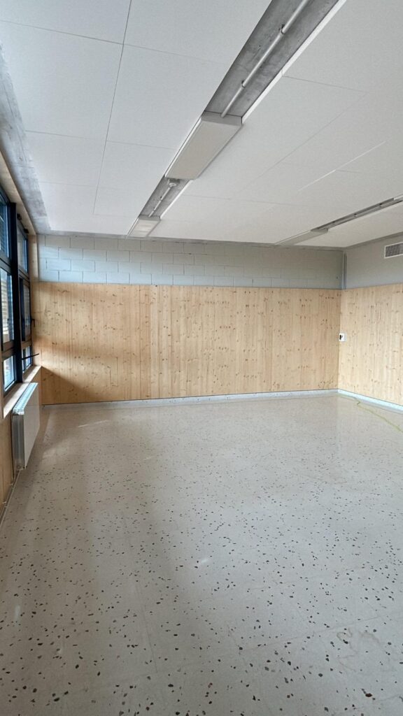 • Limpieza de suelos y superficies: Eliminación de restos de cemento, pintura, yeso y polvo fino en todas las aulas, pasillos y áreas comunes.